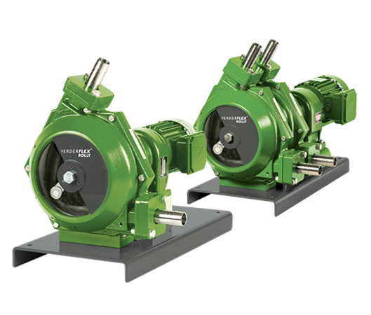 Die Doppelkopf-Schlauchpumpe Verderflex Rollit 15 TP benötigt kein zusätzliches Schmiermittel und wird hauptsächlich in der Chemie-, Pharma- und Lebensmittelindustrie eingesetzt. Sie ist für einen Differenzdruck bis zu 4 bar geeignet. -