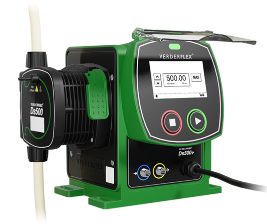 Die Verderflex Ds500 Schlauchpumpe nutzt die Peristaltik-Technologie, um einen Unterschied zu machen und die Gesamtkosten der Anwendung zu berücksichtigen. Sie kommt ohne zusätzliche Ventile oder komplizierte Verrohrung aus, die bei anderen Systemen erforderlich sind. Aufgrund ihrer peristaltischen Eigenschaften eignet sie sich für abrasive Stoffe, Schlämme oder Medien mit einer Viskosität, die andere Technologien beeinträchtigen können. Eine größere Genauigkeit und ein geringerer Chemikalienverbrauch sparen Geld. Ein weiterer Vorteil ist der minimale Wartungsaufwand, da der Kartuschenwechsel - die wichtigste Verschleißkomponente - im Handumdrehen erledigt ist. Und in Verbindung mit RA (Remote Assistant) kann die IoT-Überwachung Leistungsrückmeldungen liefern, um sicherzustellen, dass Ausfallzeiten verwaltet und minimiert werden.