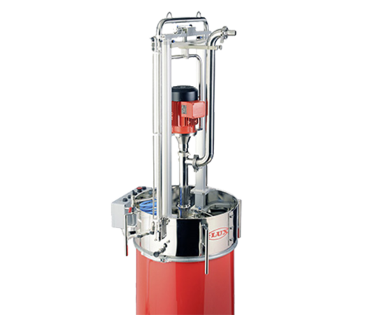 Vyčerpávací systém VISCOFLUX slouží k rychlému vyčerpání vysoce viskozních, pastovitých a netekoucích produktů z 200 l sudů, zbytkové množství pod 1 %. -