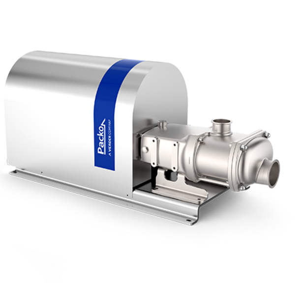 A twin screw pump, such as this Packo ZS, is a positive displacement pump, which means that the pump transfers a certain volume of product according to the speed and pitch of the screws. As the screws turn, they form closed chambers that move in an axial direction.