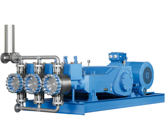 Bombas hidráulicas de membrana con gestión de posicionamiento de membrana con presión equilibrada. Durante la aspiración o la carrera de presión, las membranas no se cargan con picos de presión. Pistón triple (triplex).