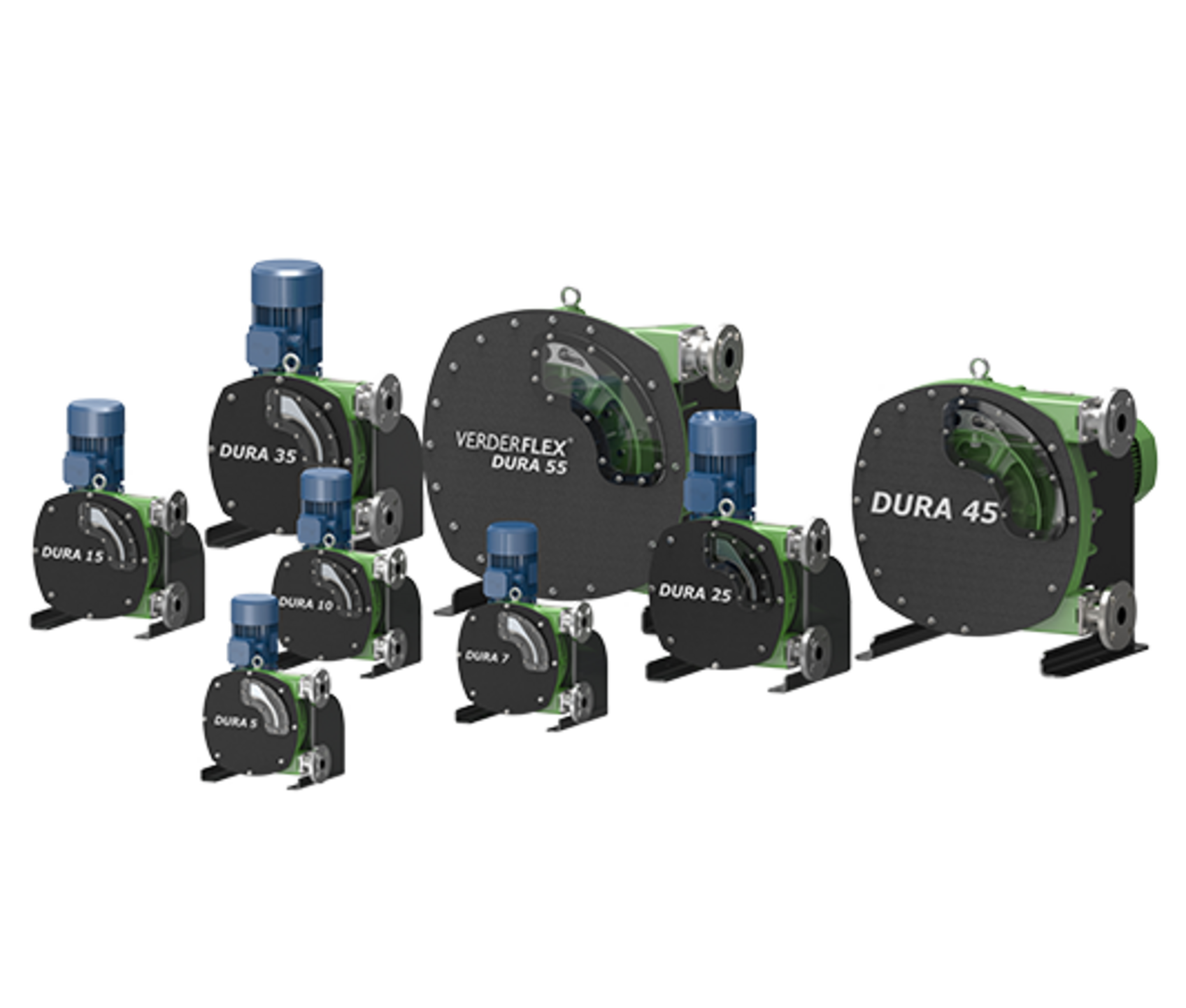 NSF 61 인증 펌프의 Verderflex Dura 제품군은 9개 모델, 즉 0.20gph의 매우 낮은 유량과 120psi를 초과하는 압력을 위한 Dura 5, 최대 95gpm의 연속 유량 및 간헐적 유량이 있는 2.5인치 펌프인 최대 Dura 65로 구성됩니다. 145gpm.