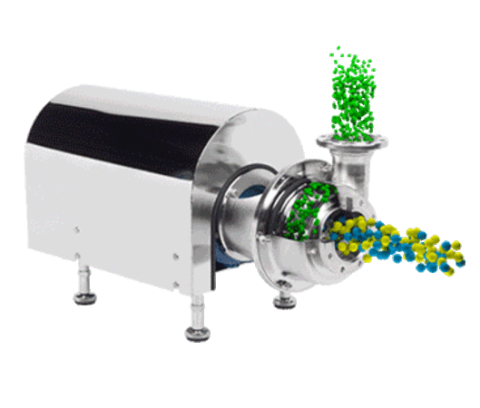 Visoki smicanje pumpe sa zatvorenim radno kolo i patentiranog statora za visok protok i pritisak. Smicanje se generiše između rotora i inovativnog i optimizovanog perforiranog statora. Makaze se mogu optimizirati i povećati povećanjem brzine rotacije. Smicanje stope do 60.000 s-1 može se postići pri maksimalnoj brzini od 3600 o / min.